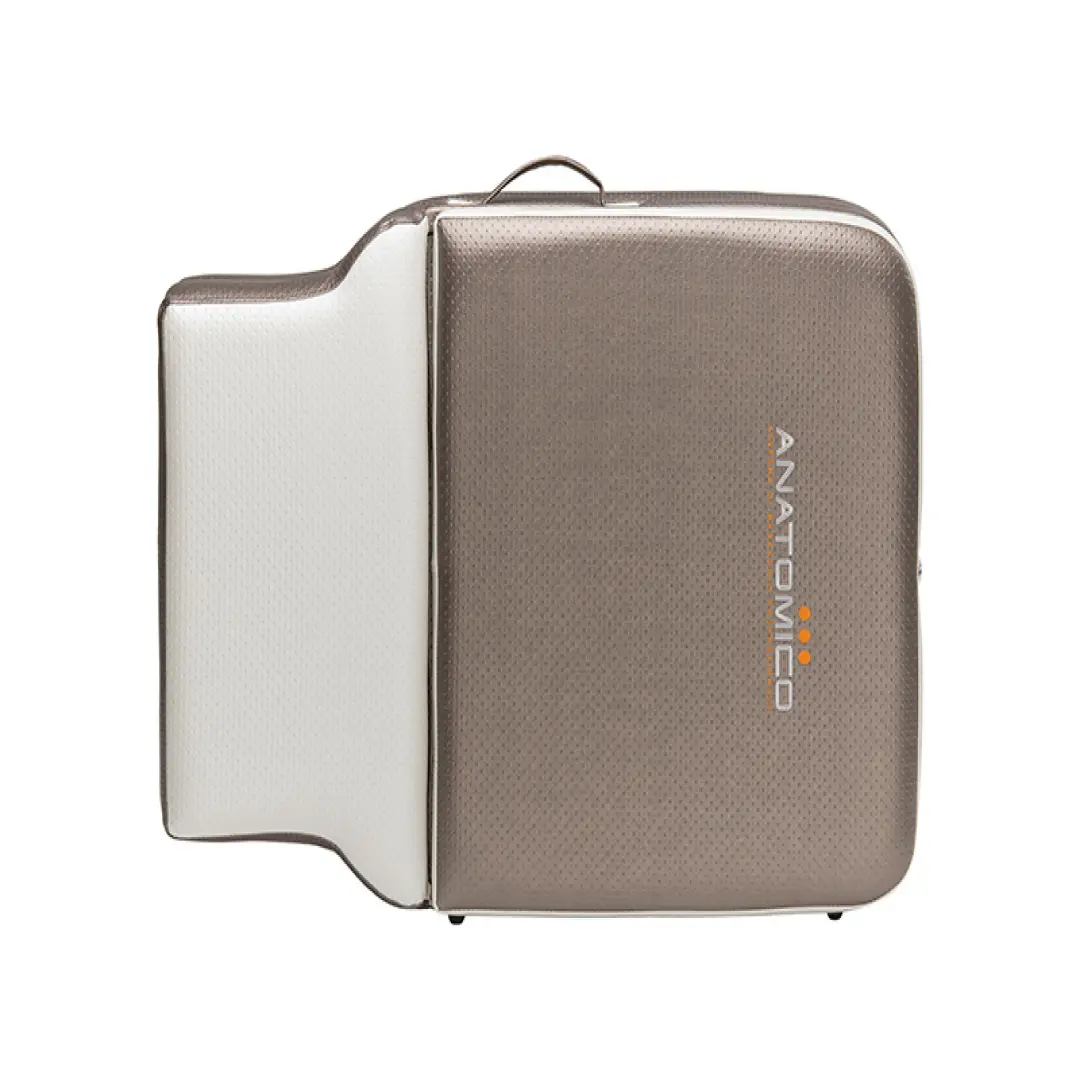 Для крепления съемного подголовника может использоваться как подъемная, так и противоположная секция. Массажный стол Anatomico Verona может комплектоваться полкой для рук, заглушкой для лицевого люверса, а также надежной и удобной сумкой-чехлом.